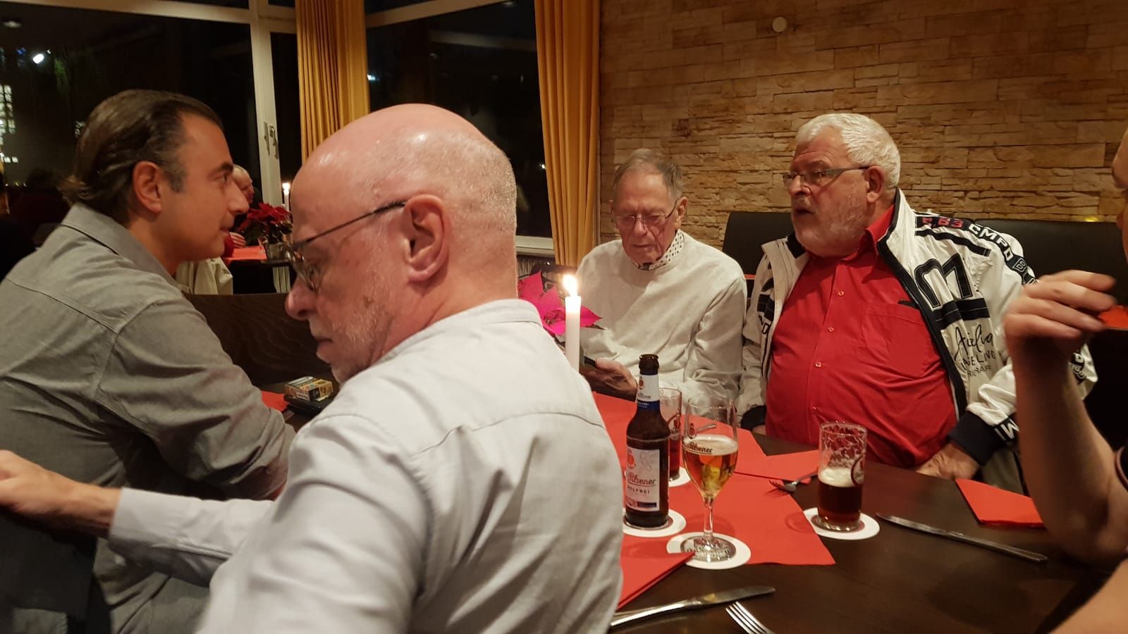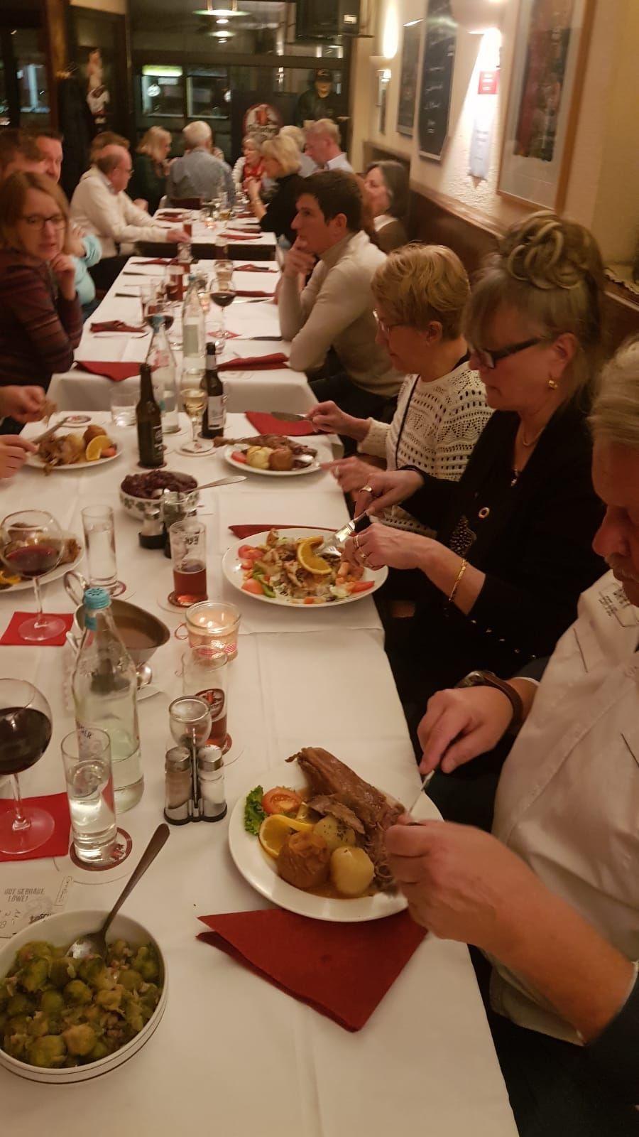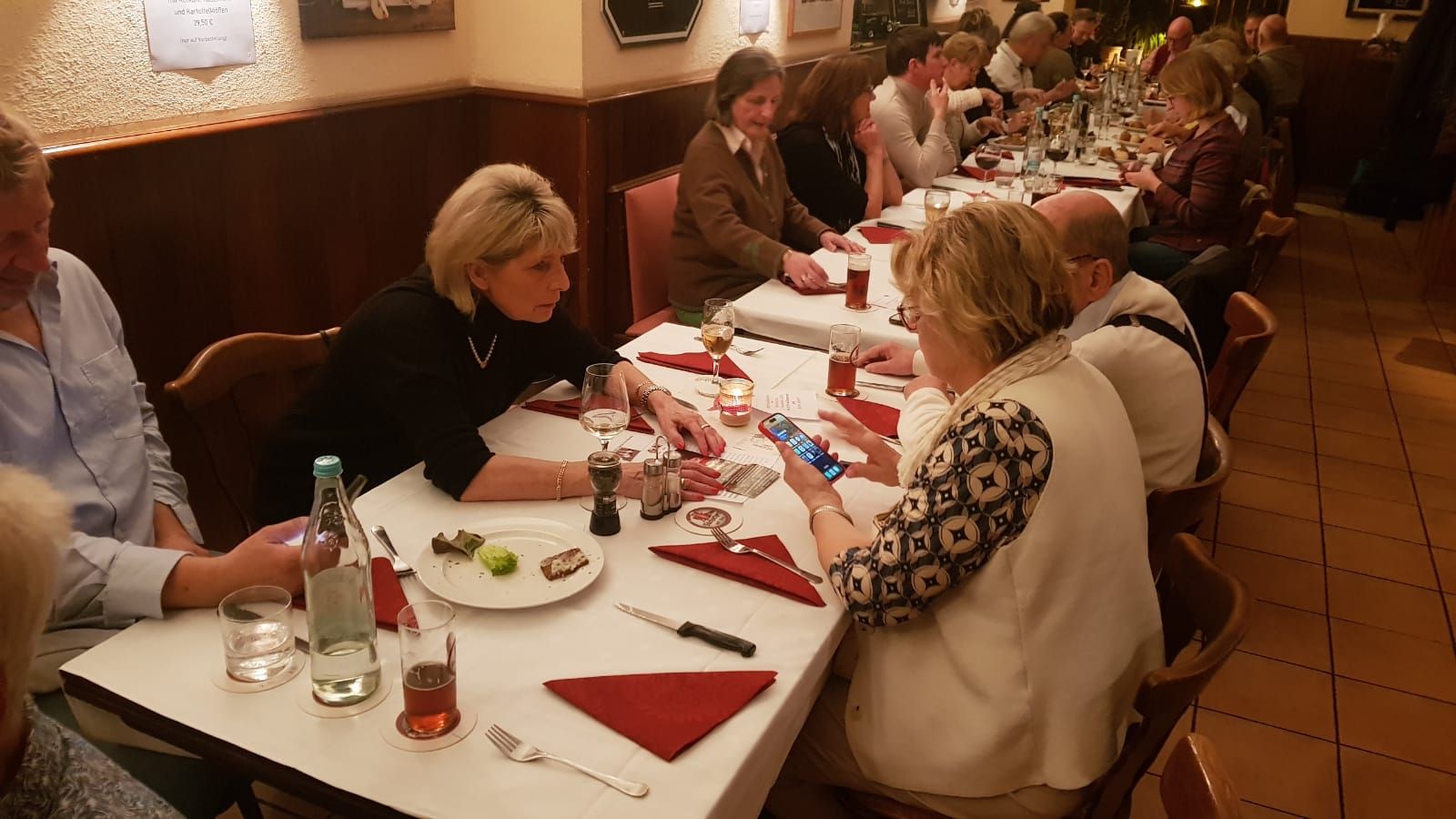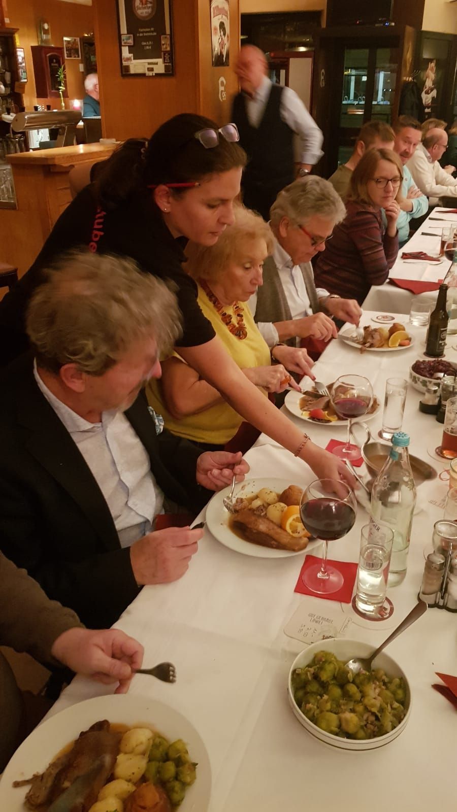 Nach dem sehr schönen "Gänseessen" bei Alex im d-town am Burgplatz, sollte es dieses Jahr mal woanders hingehen. Obwohl uns Alex gerne wieder bewirtet hätte, entschieden wir uns für den Tennisclub "rot-weiß" in der Lenaustraße. Die bekannt gute Küche servierte auch uns allen ein hervorragendes, reichhaltiges Gänseessen. Wenngleich sich Adolf gegen Bratapfel und Maronen entschieden hatte, so hätte der ein oder andere das sehr gute Essen doch noch gern damit abgerundet.