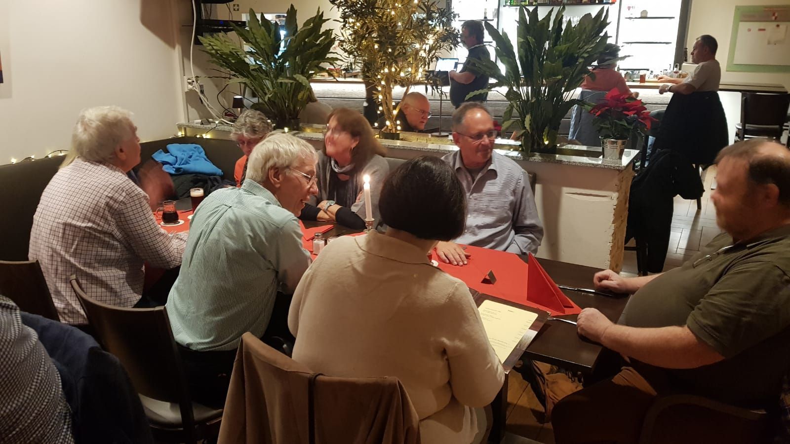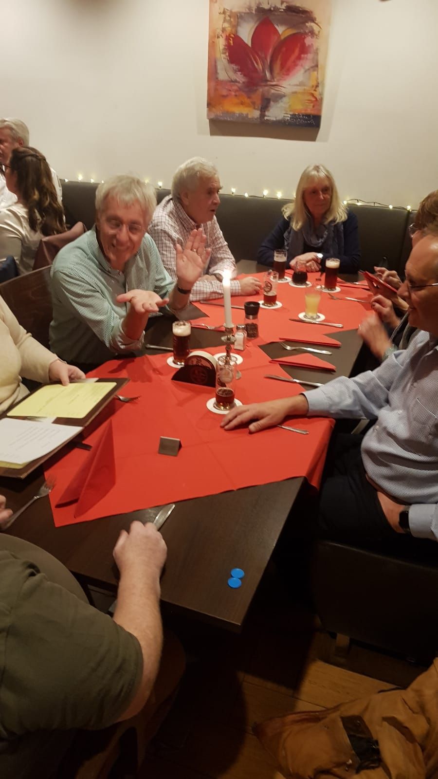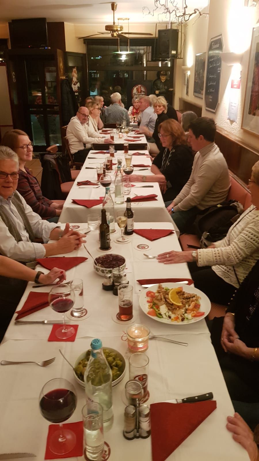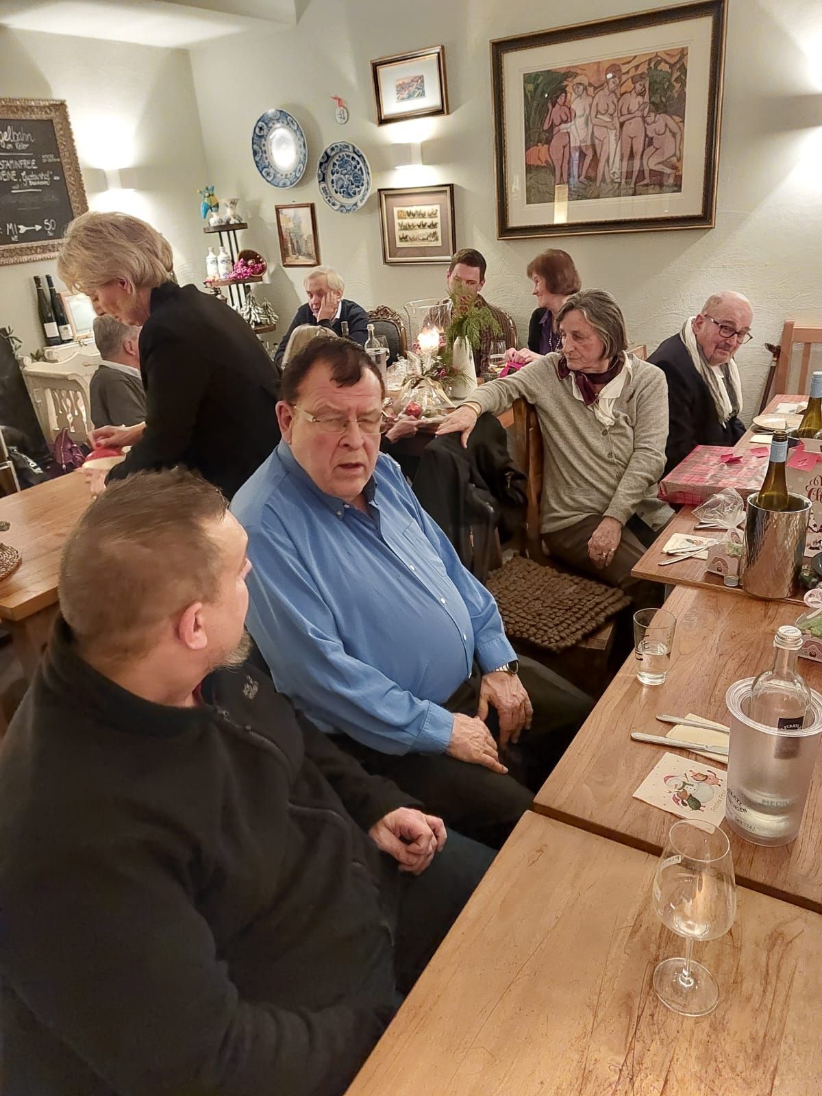 Nach dem sehr schönen "Gänseessen" bei Alex im d-town am Burgplatz, sollte es dieses Jahr mal woanders hingehen. Obwohl uns Alex gerne wieder bewirtet hätte, entschieden wir uns für den Tennisclub "rot-weiß" in der Lenaustraße. Die bekannt gute Küche servierte auch uns allen ein hervorragendes, reichhaltiges Gänseessen. Wenngleich sich Adolf gegen Bratapfel und Maronen entschieden hatte, so hätte der ein oder andere das sehr gute Essen doch noch gern damit abgerundet.