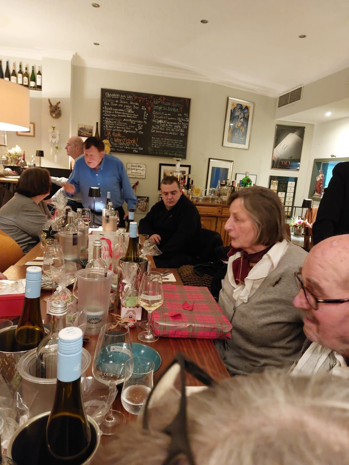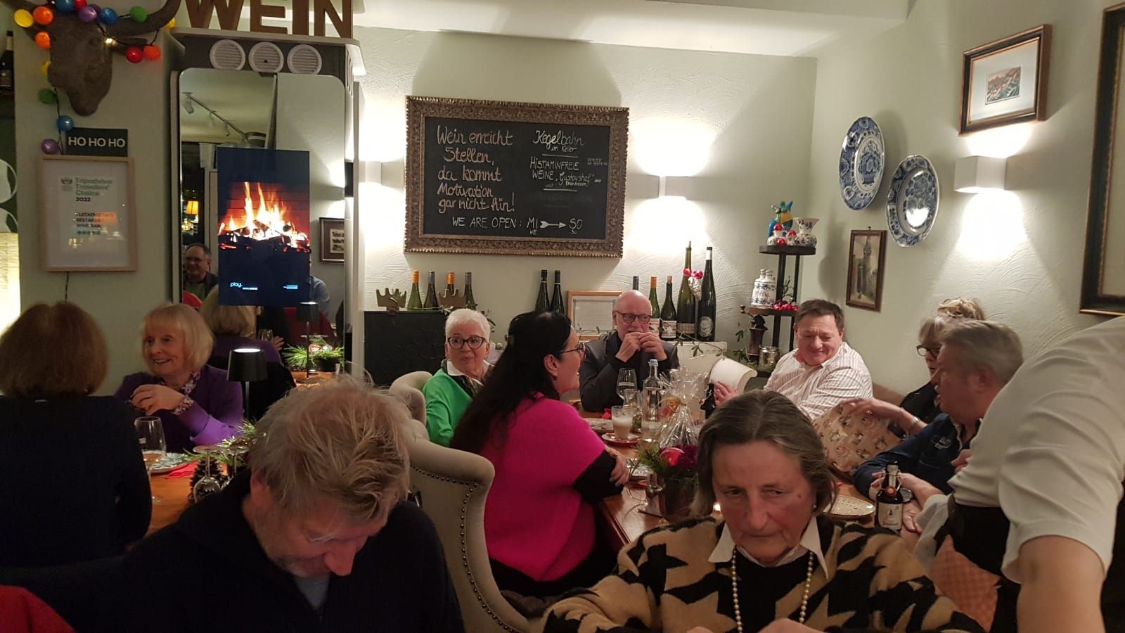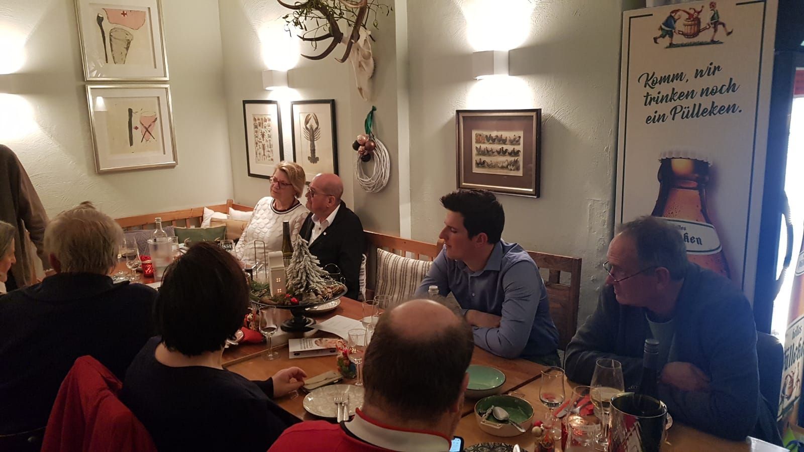 Die diesjährige Weihnachtsfeier sollte wieder bei unserem Tischmitglied Markus in seinem Restaurant "Fleckensteins" in der Schlossstrasse stattfinden. Die Treue zu unserem Tischmitglied und die Gemütlichkeit in seinem Restaurant zogen uns erneut in diese Location. Ein klassisches Weihnachtsmenü wurde durch einen Reigen an leckeren Speisen, serviert über einen längeren Zeitraum des Abends, serviert. Leckerbissen für Gourmets ohne unter einem Völlegefühl leiden zu müssen, herrlich.