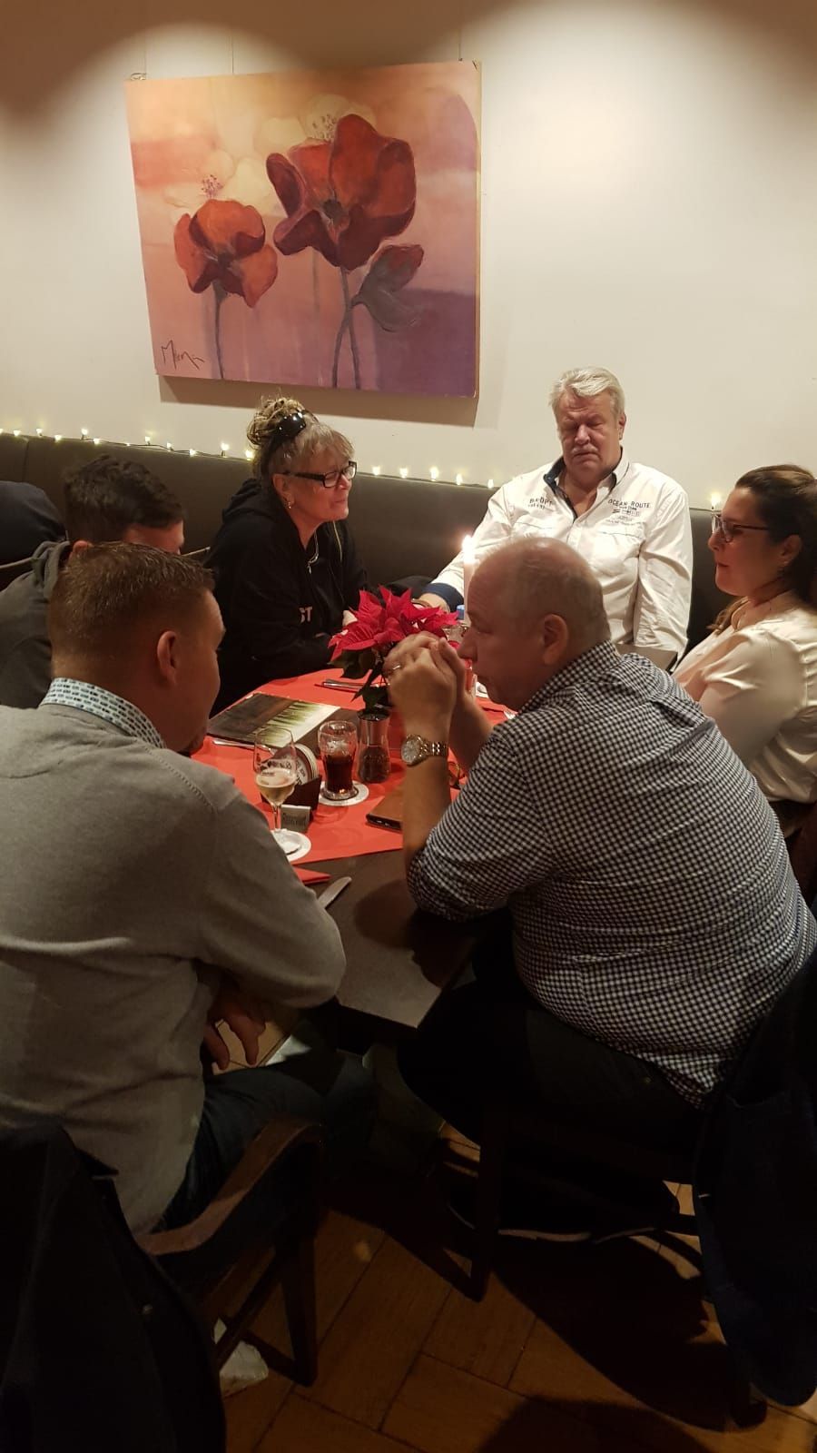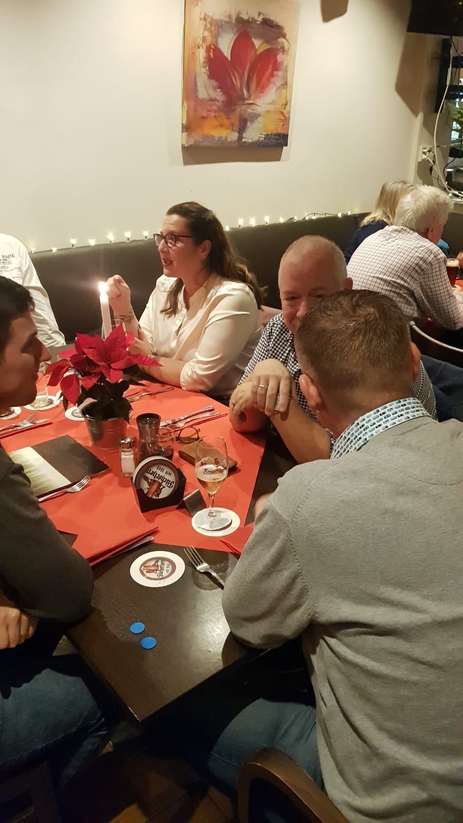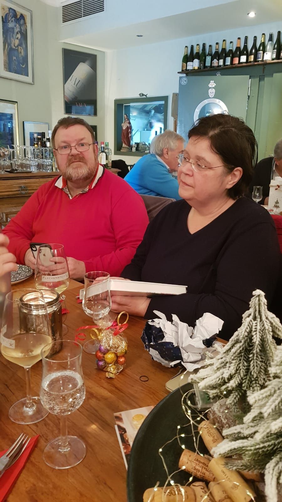 Die diesjährige Weihnachtsfeier sollte wieder bei unserem Tischmitglied Markus in seinem Restaurant "Fleckensteins" in der Schlossstrasse stattfinden. Die Treue zu unserem Tischmitglied und die Gemütlichkeit in seinem Restaurant zogen uns erneut in diese Location. Ein klassisches Weihnachtsmenü wurde durch einen Reigen an leckeren Speisen, serviert über einen längeren Zeitraum des Abends, serviert. Leckerbissen für Gourmets ohne unter einem Völlegefühl leiden zu müssen, herrlich.