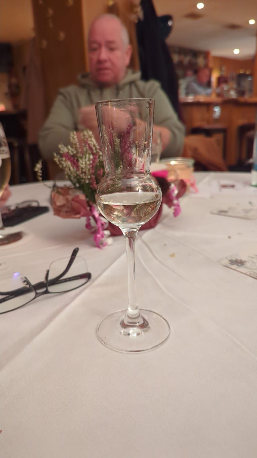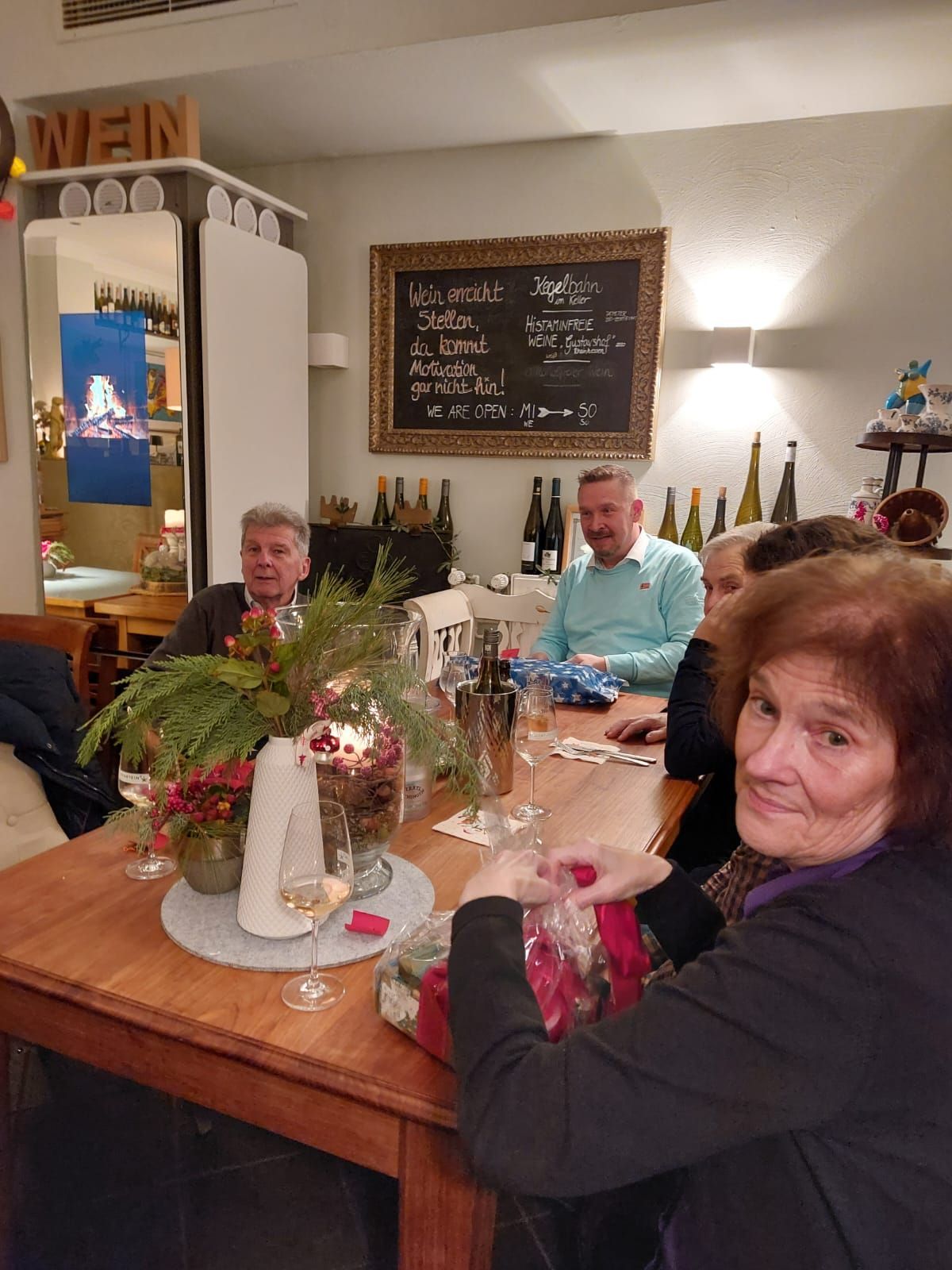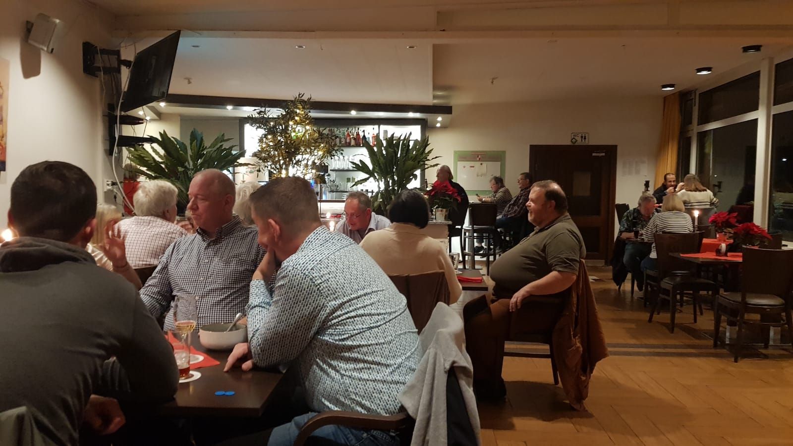 Nach einem sehr schönen Martinsgansessen 2023 im Tennisclub "rot/weiss" fiel die Entscheidung dieses Jahr für die Brehmstube aus. 33 Anmeldungen sollten für die Brehmstube kein Problem sein. Die Spannung wuchs von Tag zu Tag und von Stund zu Stund. Und dann am 2.11.2024, gegen 19 Uhr, sollte sich die Spannung legen. Brust und Keule, krosch und zart gebraten, mit Knödeln, leckerer Sauce, Rotkohl und Rosenkohl und einem mit Marzipan gefüllten Bratapfel, mmh, ganz lecker. Rotkohl, Rosenkohl, Sauce und Knödel wurden in Schüsseln grosszügig nachgereicht. Es war ein hervorragendes Martinsgansessen in angenehmer Atmosphäre und bei bester Stimmung.